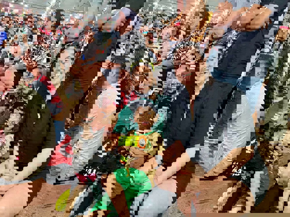 No meio da predominância rubro-negra, um grupo chamava a atenção pelas cores. Dhiulia, Kall, Benício e a cachorra Kira vestiram a camisa do Palmeiras. “A emoção é grande. O evento está muito importante, tanto o jogo quanto a decoração natalina. Ainda queremos patinar no gelo. Nem acreditava que seria gelo de verdade, mas vamos nos inscrever para outro dia”, contou Dhiulia. Para ela, a diferença de torcida não importou, porque a família estava vivendo o momento junto.