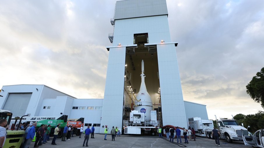 Agência Espacial Norte Americana inicia deslocamento do SLS até a plataforma 39B; missão tripulada vai orbitar o satélite e promete marco histórico