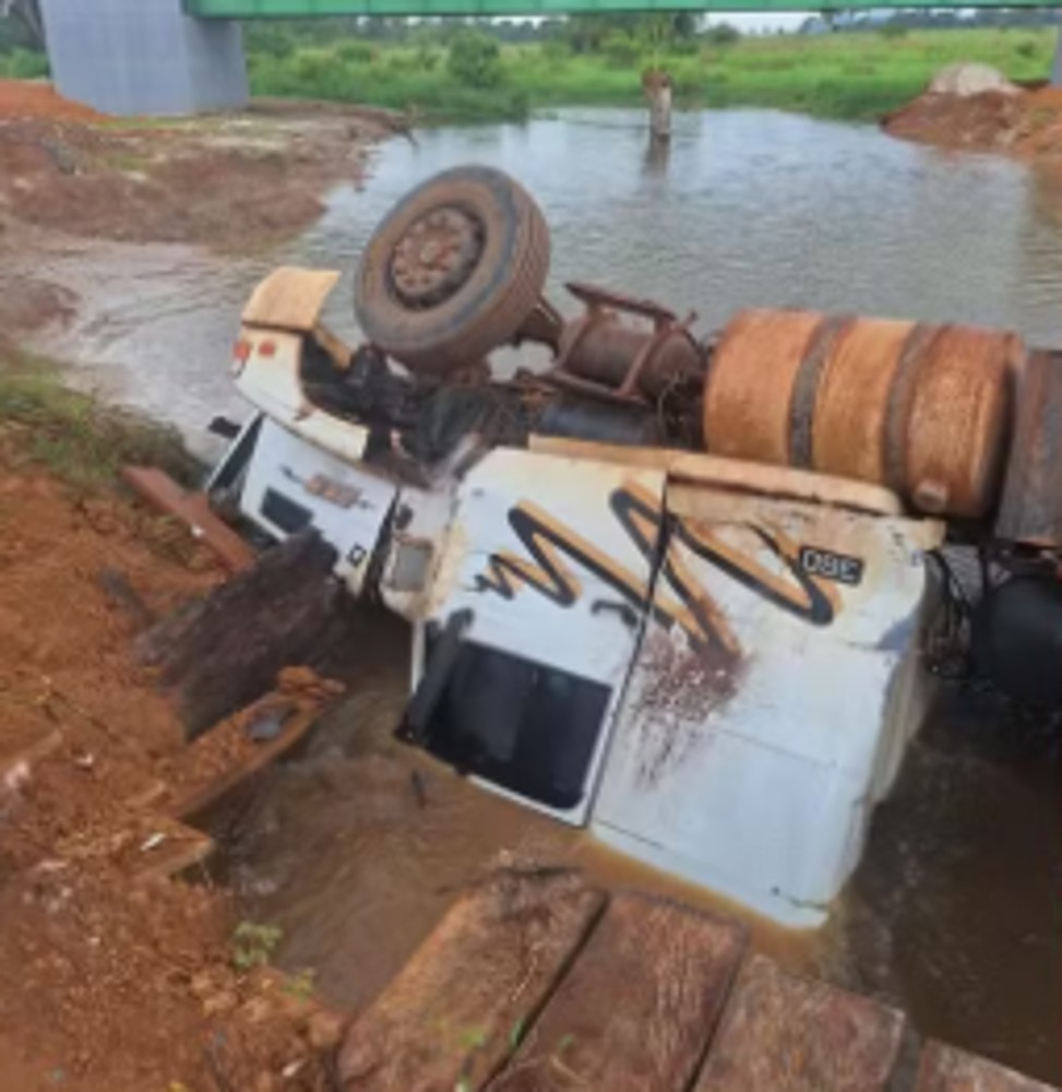 Por causa da obra, os veículos precisam passar por um desvio provisório. Segundo moradores, ao fazer uma curva acentuada nesse trecho, o caminhão passou sobre toras de madeira que sustentavam o aterro. As toras teriam se deslocado e o veículo perdeu sustentação, caindo no rio.