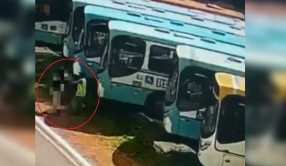 O homem estava se escondendo entre alguns ônibus, enquanto aguardava a mulher passar próximo dele - Foto: Reprodução